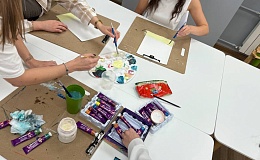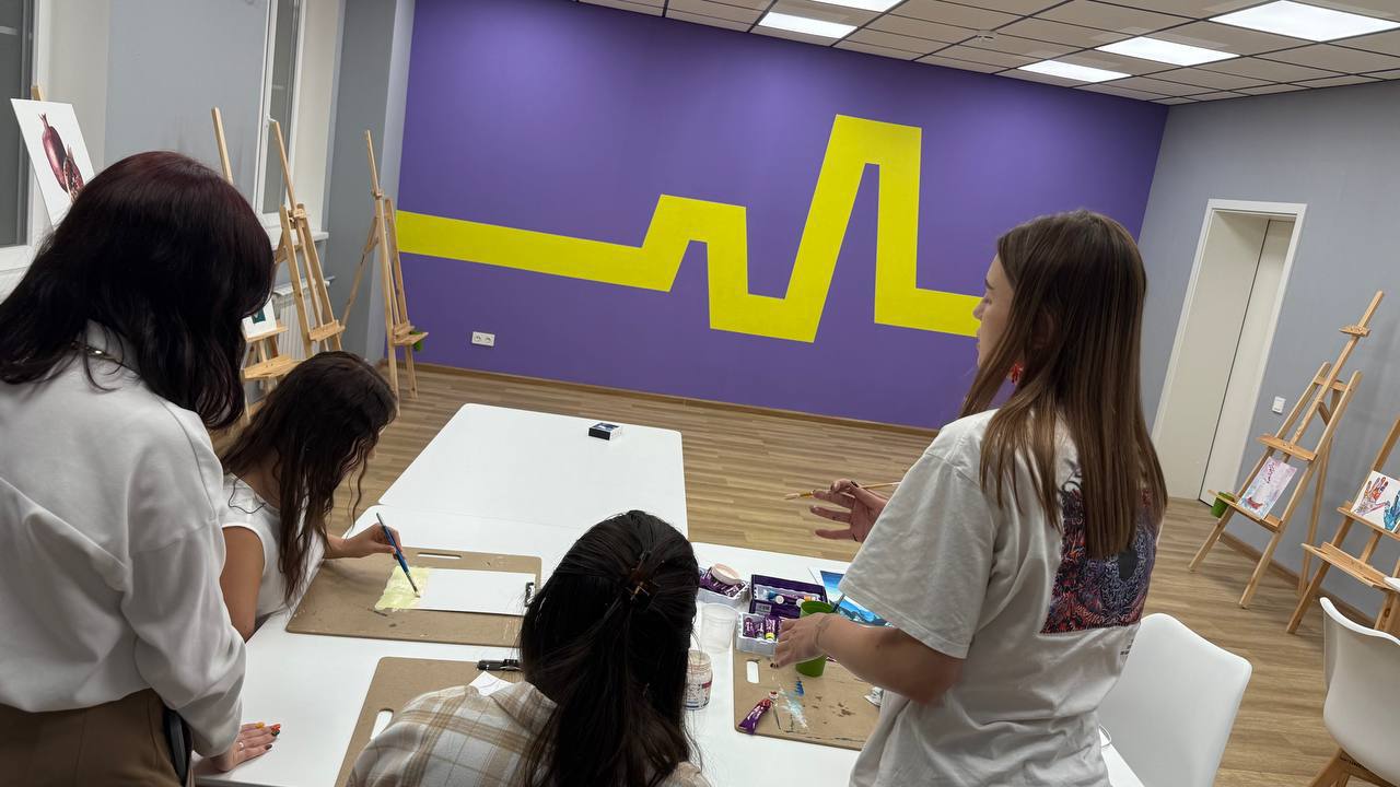 В Доме молодежи прошло занятие студии «Визуальное искусство». Под руководством наставника девочки учились работать с теплой цветовой палитрой, смешивать оттенки и передавать на холсте особое настроение уходящего дня. Темой занятия стал живописный «Закат на острове».